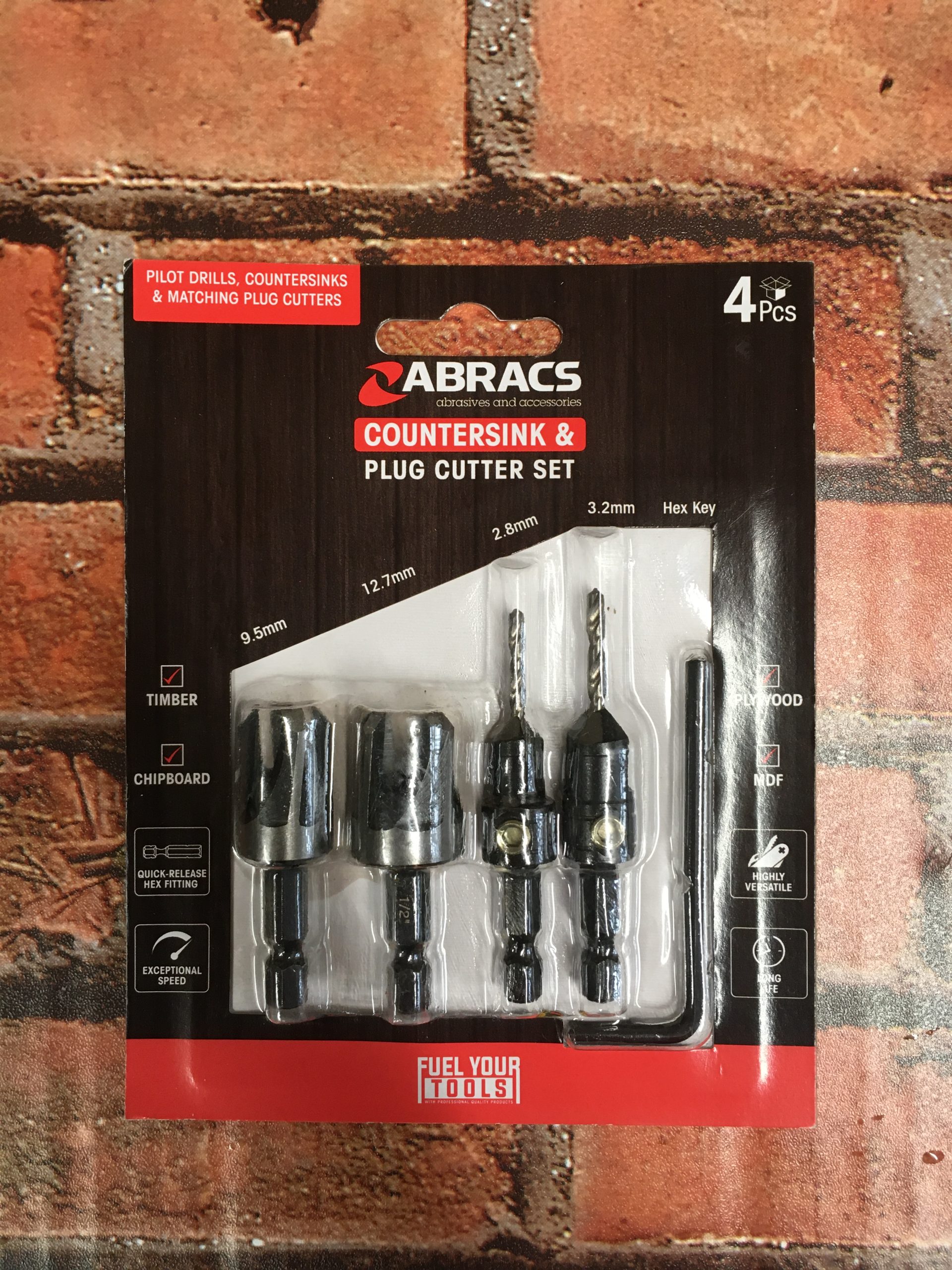 Abracs 4 PCS Countersink and plug cutter set