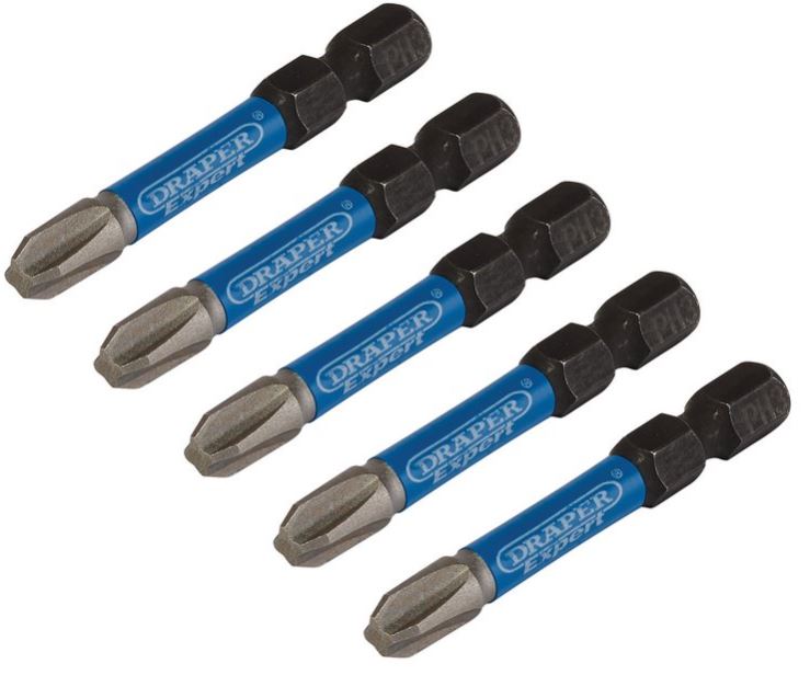 DRAPER EXPERT CROSS SLOT/PH TYPE IMPACT SCREWDRIVER BITS, NO.3 X 50MM, 1/4″ HEX (PACK OF 5)