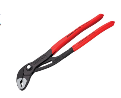 The Knipex 87 01 Cobra Series Water Pump Pliers are made from chrome vanadium electric steel, which has been forged and multi-stage oil-hardened for excellent durability. The gripping surfaces have special hardened teeth, with hardness approx. 61 HRC to ensure high wear resistance and stable gripping. A press-button action allows fast and firm adjustment directly on the workpiece. The pliers allow fine adjustment, for optimum adaptation to different sizes of workpiece and are self-locking on pipes and nuts to prevent slipping. Their box joint design provides high stability. A reliable catching of the hinge joint ensures no unintentional shifting. Knipex 87 01 300 Cobra Water Pump Pliers PVC Grip 300mm.