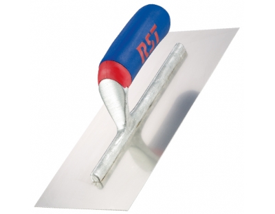 RST 14″ x 4 3/4″ Stainless Steel Finishing Trowel; stainless steel blade, with alloy mounting and a soft touch handle