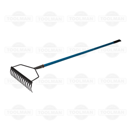 High-quality, heavy duty garden rake with epoxy-coated hammer-finished head. Tubular steel handle with comfortable grip and hanging hole. Head L x W: 180 x 350mm.